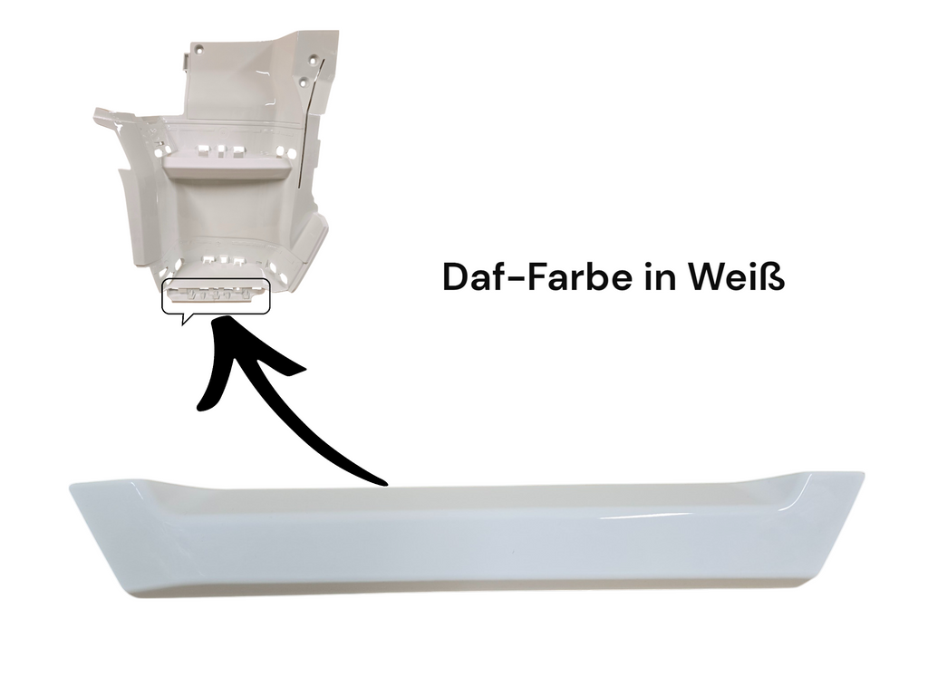 Farbhinweis: Das Bauteil ist bereits in DAF Weiß lackiert. Die Farbe entspricht der originalen DAF Weißfarbe – ein zusätzliches Lackieren ist nicht erforderlich. Das Teil ist sofort montagefertig.