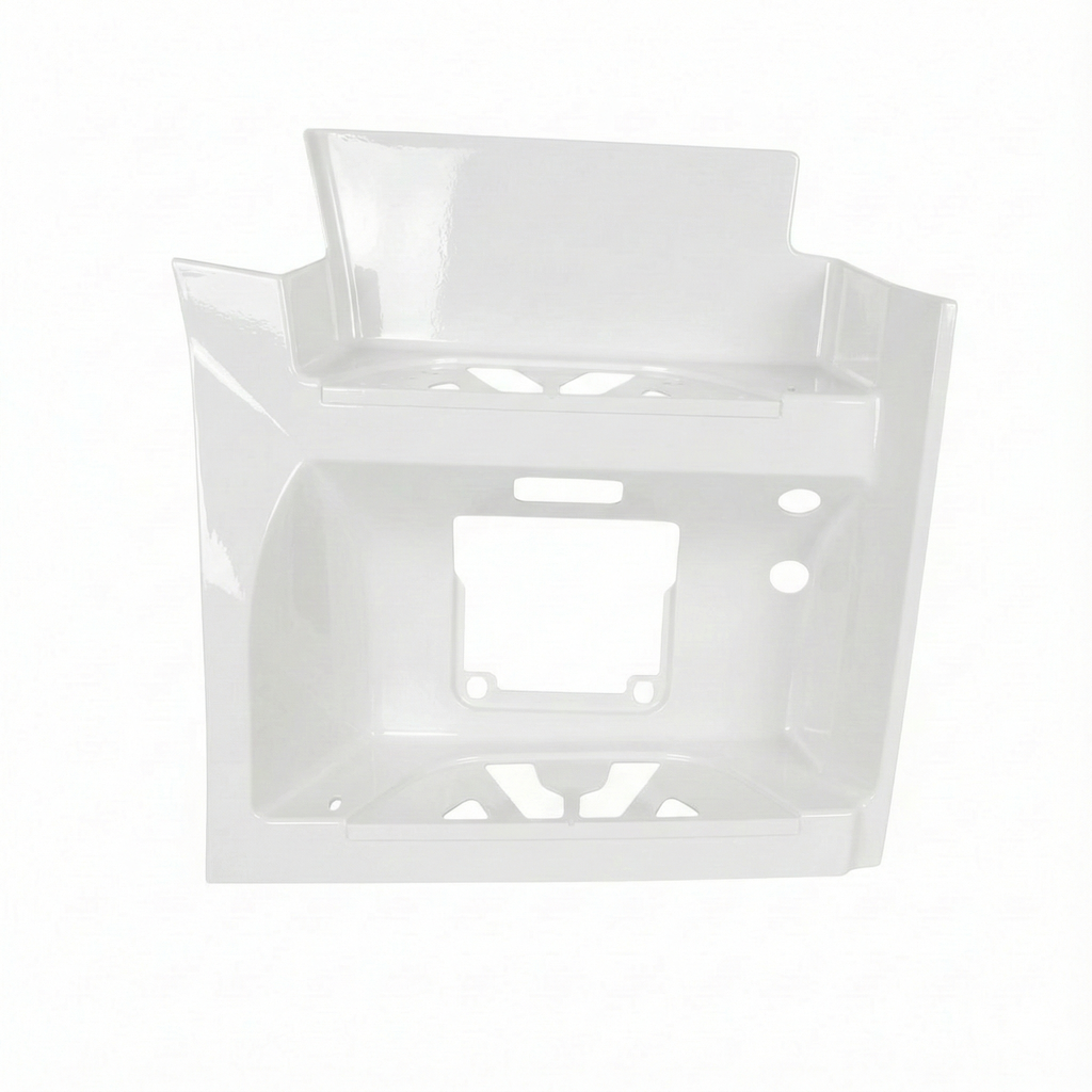 Dieser lackierte Einstiegskasten unten rechts ist passend für Mercedes-Benz Actros MP4 und MP5. Die farblich vorbereitete Version in Weiß 9147 (Arctic White) ist ideal als Ersatzteil, wenn die Original-Fußstufe beschädigt oder verloren gegangen ist.
