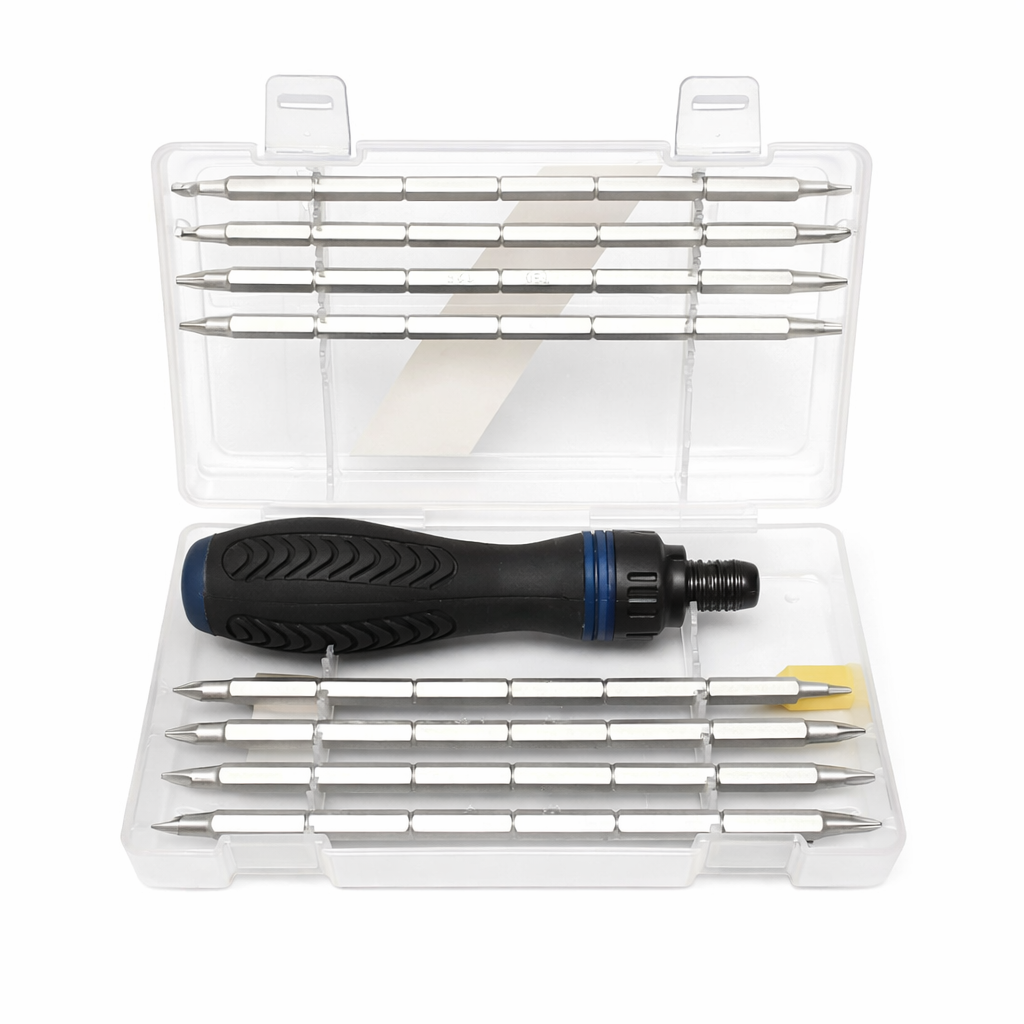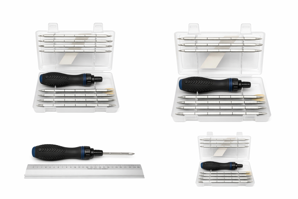 - Mehrere Bit-Aufsätze (Torx / PH / SL / HEX)